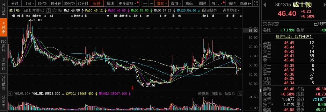 威士顿于2023年6月登录创业板,最高价一度摸高至99元,目前总市值不足41亿元。截至最新收盘数据,威士顿股价报收于46.4元每股,这也意味着茆宇忠前妻分走的2000万股股份,价值超过9亿元。